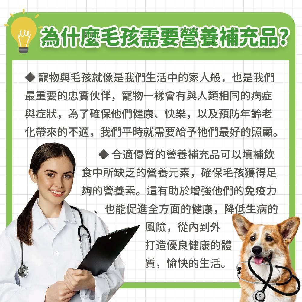 透過日常營養補充品保持健康,與罹患疾病需要負擔龐大的醫藥費相比,CP值可說是相當高,讓毛孩有健康的身體才能降低未來的醫療成本。