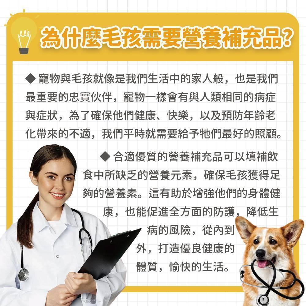 透過日常營養補充品保持健康,與罹患疾病需要負擔龐大的醫藥費相比,CP值可說是相當高,讓毛孩有健康的身體才能降低未來的醫療成本。