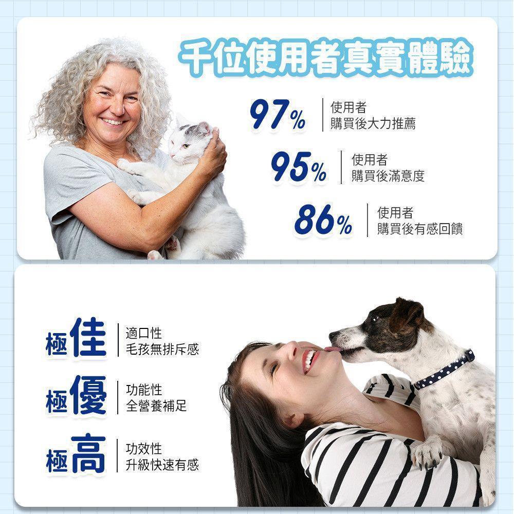 因此,我們堅持給毛孩如同家人般最好的呵護,打造滿足毛孩營養需求、愛吃且符合安全、無負擔、高營養、好吸收、有效、實惠的保健食品。